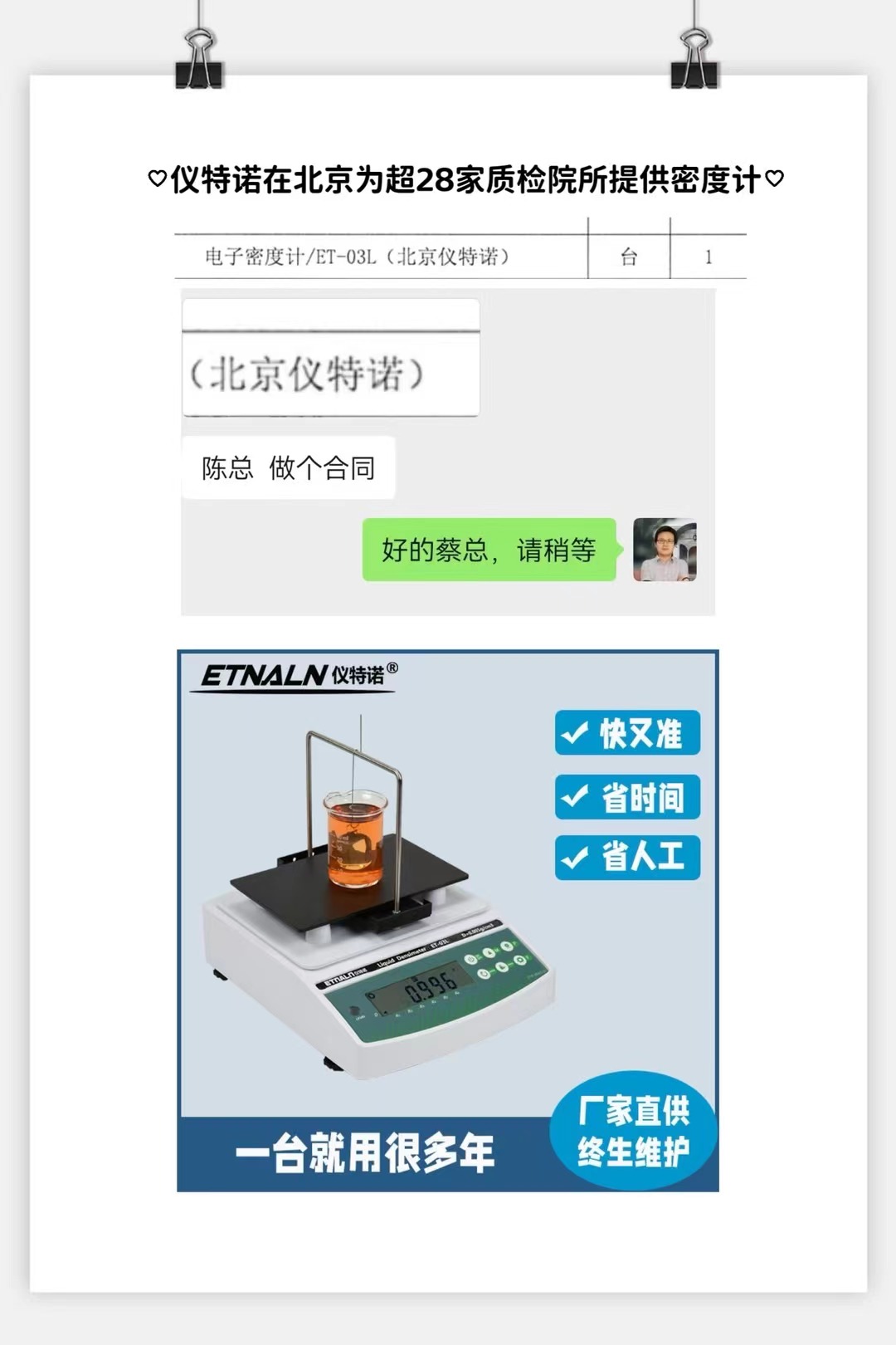 儀器商指定型號(hào)和品牌來采購(gòu)電子密度計(jì)ET-03L。