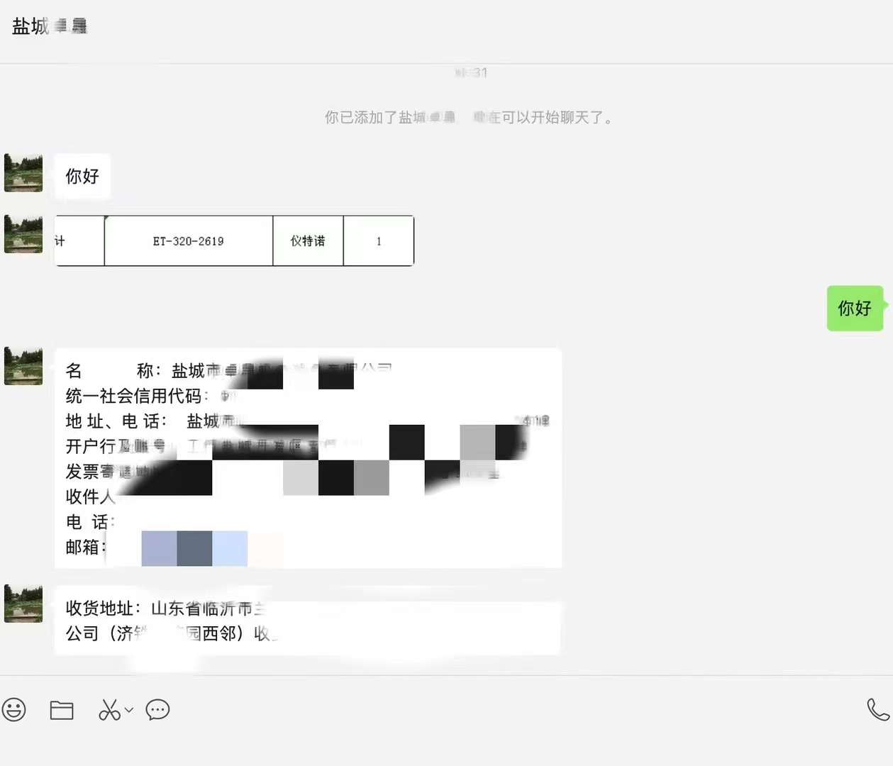 這個加上微信就發(fā)開票信息和收貨地址的客戶,其實這臺ET-320密度計用戶首次來咨詢的時間是在2月初~