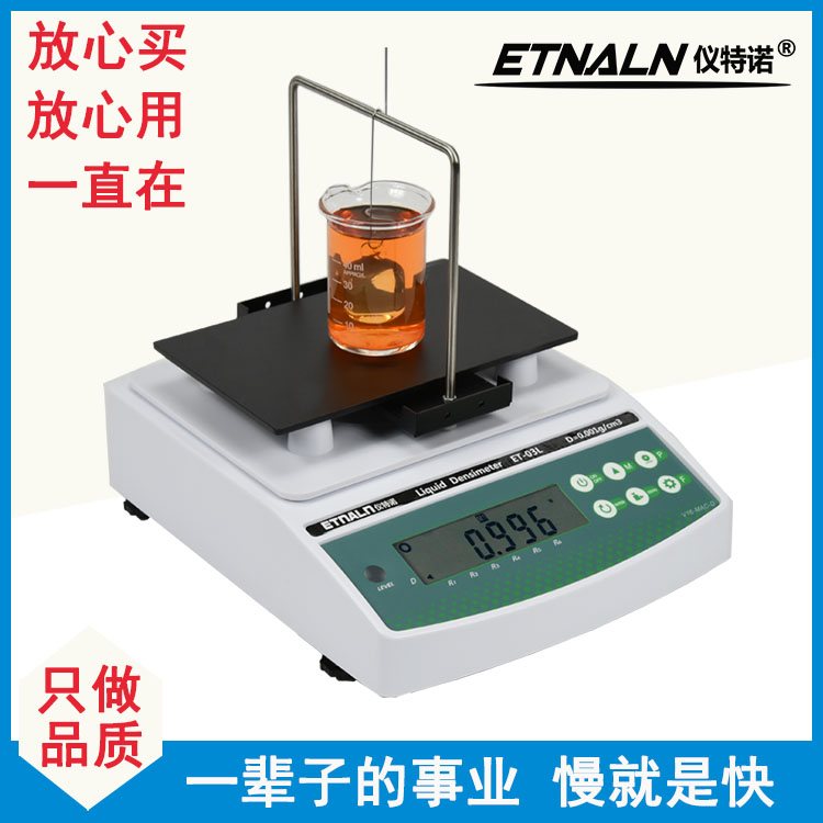 儀特諾液體密度測(cè)試儀ET-03L是利用阿基米德原理檢測(cè)密度,是國(guó)際通用液體密度測(cè)量是方法之一,該儀器有著極其方便的操作性,具有測(cè)量簡(jiǎn)便、測(cè)量精準(zhǔn)、穩(wěn)定可靠等特點(diǎn),儀特諾精密的細(xì)節(jié)設(shè)計(jì)確保了本機(jī)在測(cè)量密度時(shí)不受熱脹冷縮、清洗難、刻度標(biāo)示誤差大、測(cè)量范圍窄小、煩瑣操作、等因素影響。
